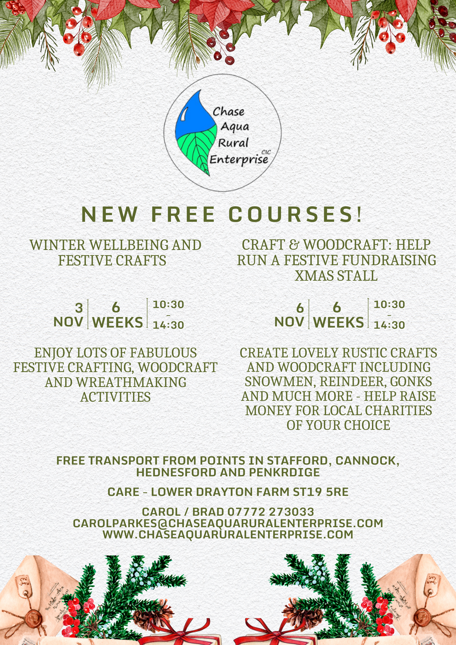 Enjoy two free great course this festive period, please see attached photo for full details. The courses are face to face and ran from our rural project in Penkridge.